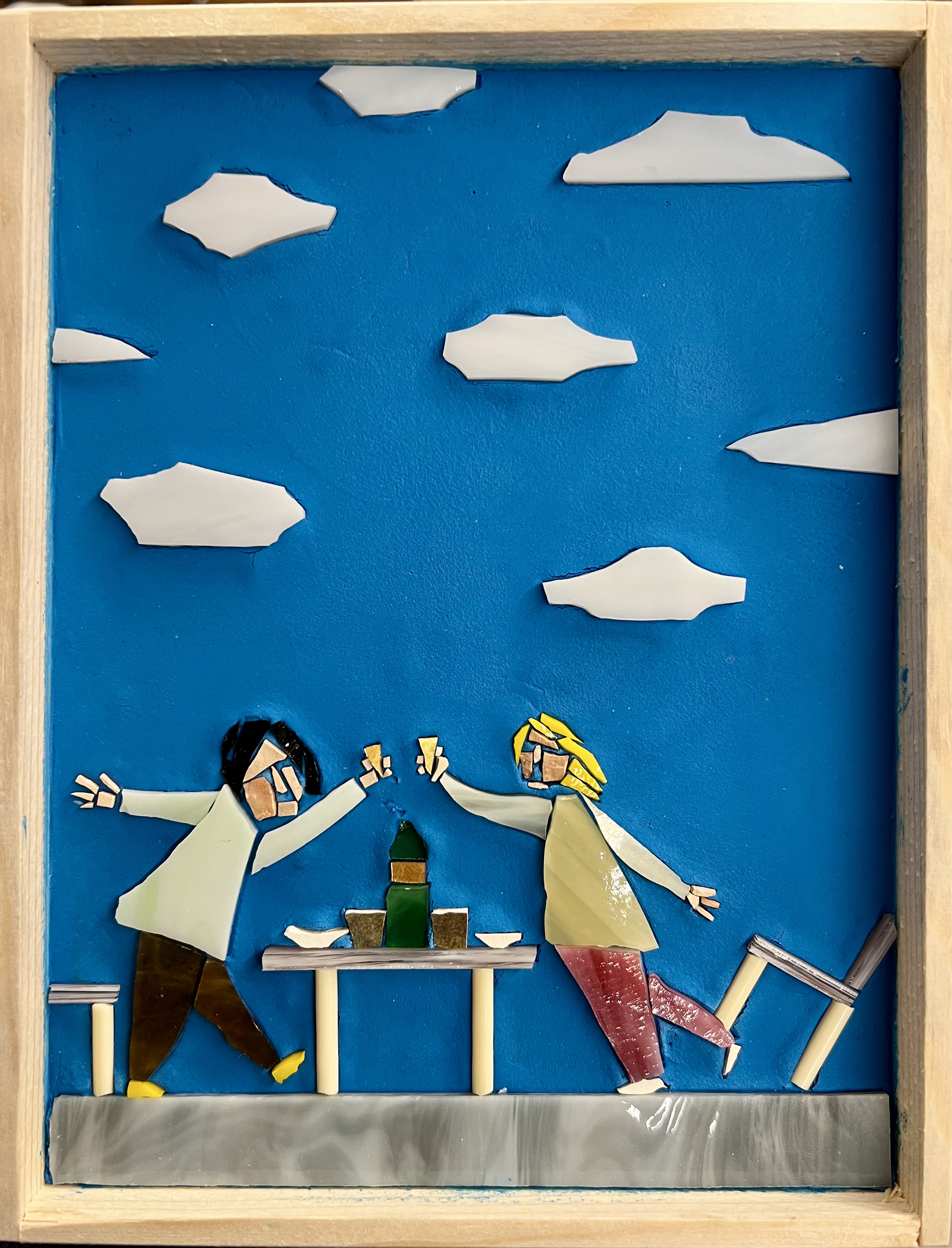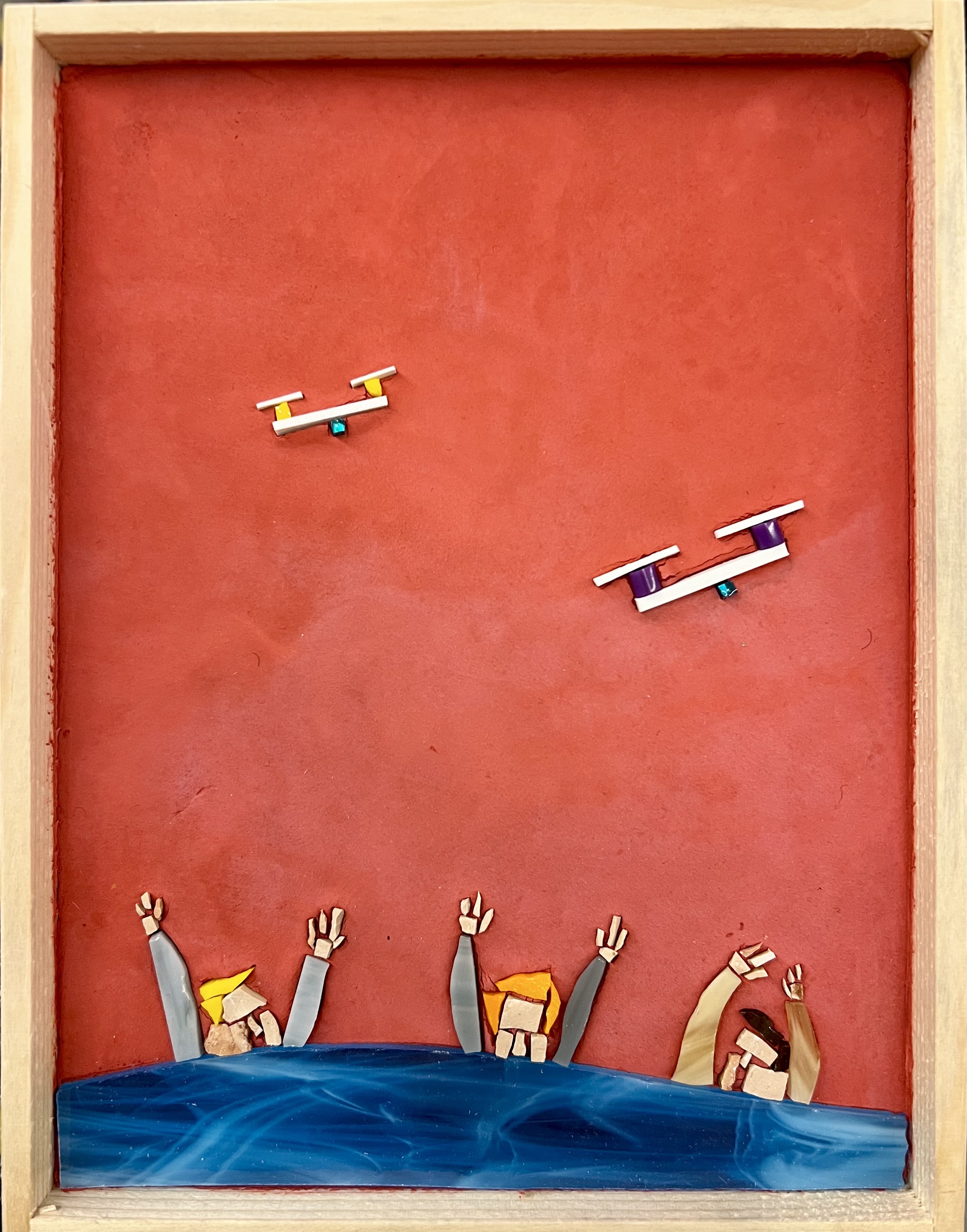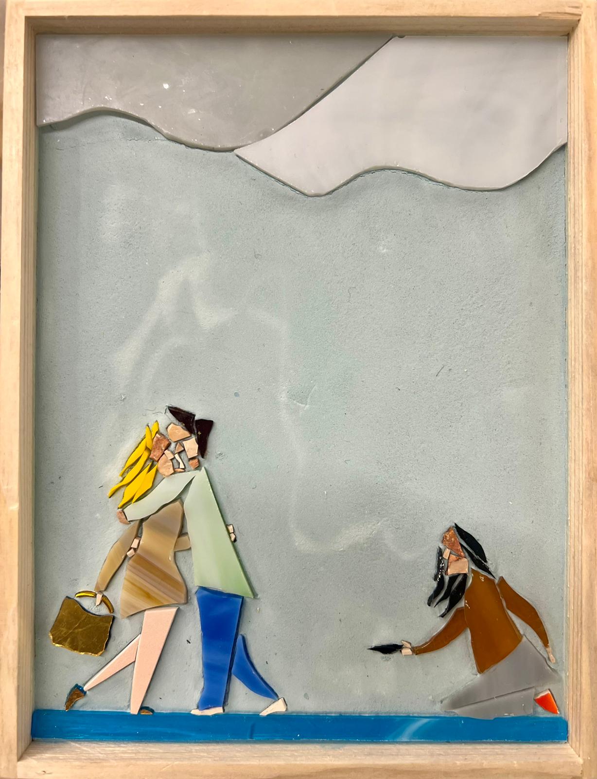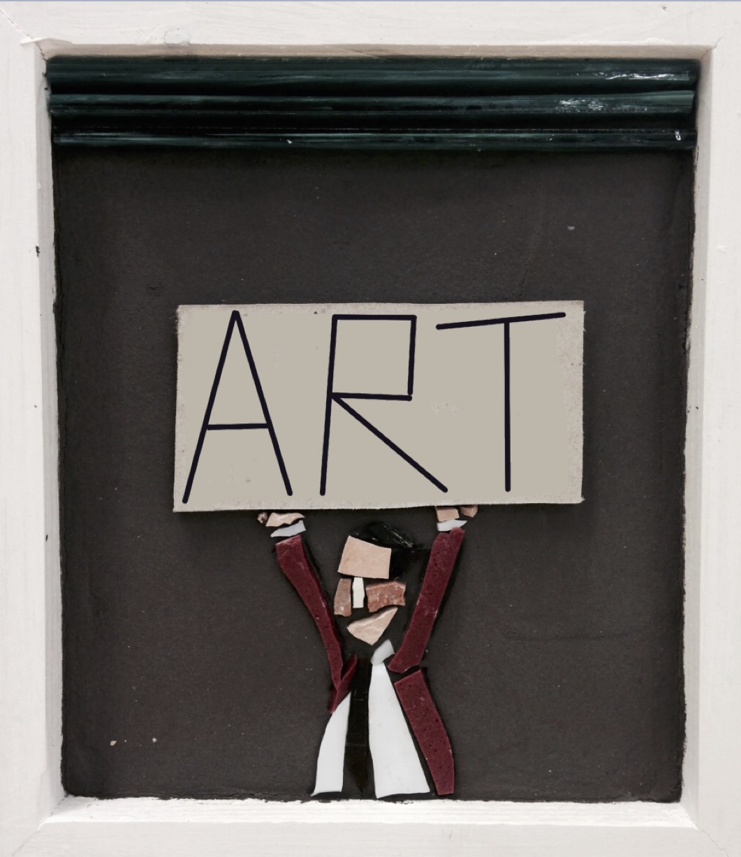 With the irony and playful spirit that characterize him, Luca tells us about the world we live in, nodding to a pop and comic-book imagery—drawn from Lowbrow Art—without neglecting to highlight the critical issues and raw nerves of advanced capitalist societies, in a short circuit made even more explicit by the use of mosaic. His lightning-quick gags—humorous, surreal, and sometimes provocative—depicted with a handful of tiles in striking chromatism and enviable powers of synthesis, elicit a bittersweet smile when we realize that the quirky little figures animating them speak to us not only of joie de vivre, but also of inequality, alienation and unease, environmental degradation, and technological impact, blending ingredients seamlessly, just as happens in real life.