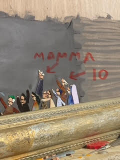 Closing the circle are the numbered multiples for the draw, as if they were lottery tickets. Luca creates eighteen small-scale mosaics from which he produces stencil prints, reproduced with bursts of spray cans in vivid complementary colors and in limited editions. With the irreverent collision between mosaic practice and street artist moves, Luca stages a wide range of implications of challenging fate, reminding us of the weaknesses and clumsiness of human greed, at the very moment when—ticket in hand—we hope to be kissed by fortune, amid the hollow celebrations of the winners, the risks one is willing to accept, dreams, deceptions, abuses, "monkeys" on our backs, and heads exploding in front of slot machines.