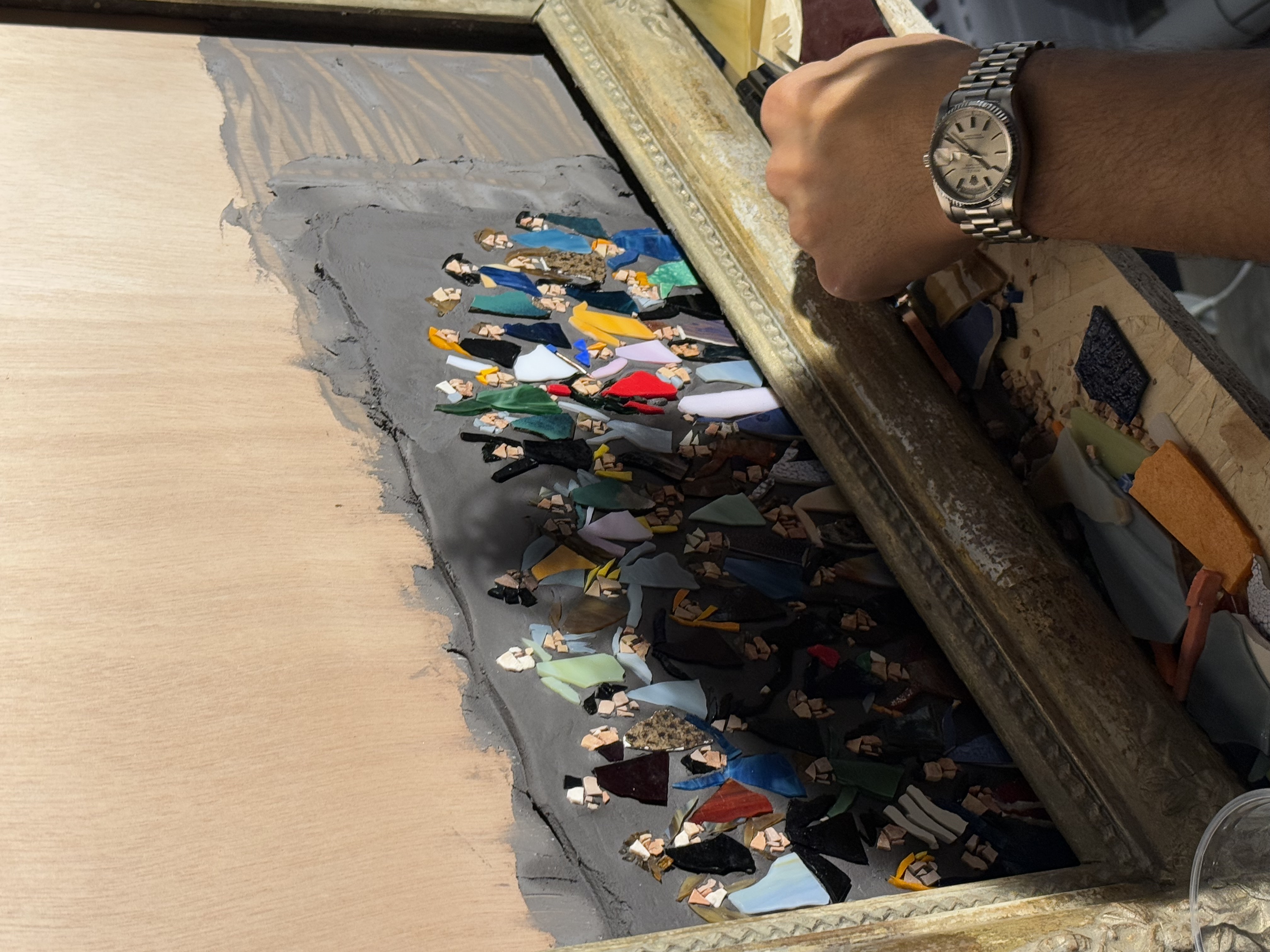 With the Lottery project, created as part of the 9th Biennial of Contemporary Mosaic in Ravenna, 2025, Luca expands the scope of his artistic practice by staging a participatory performance of magnificently ambiguous character. The operation was conceived with the idea of creating a work from the crowd series in an open workshop during the months of the Biennial, to be raffled off in a lottery that people could enter by purchasing a printed multiple.